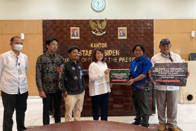 AJI Indonesia, LBH Pers dan SAFEnet menyerahkan petisi online yang telah ditandangani lebih dari 16 ribu warga ke Kantor Staf Presiden, Senin 10 Oktober 2022. Penyerahan petisi tersebut untuk mendesak