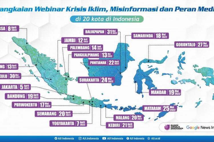 Aliansi Jurnalis Independen (AJI) dengan dukungan Google News Initiative (GNI) akan menyelenggarakan rangkaian webinar bertema "Krisis Iklim, Misinformasi dan Peran Media". Webinar ini akan digelar di