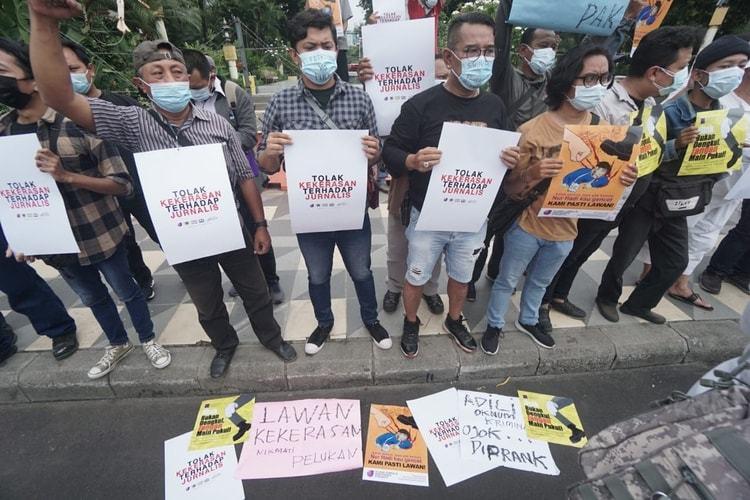 SURABAYA - Aliansi Anti Kekerasan Terhadap Jurnalis yang terdiri dari Aliansi Jurnalis Independen (AJI) Surabaya, Kontras, LBH Pers, dan LBH Lentera, mendesak agar polisi mengusut dan mengungkap