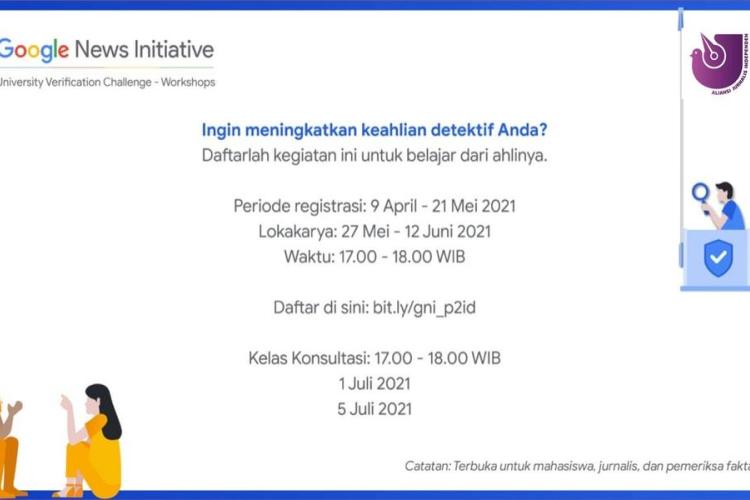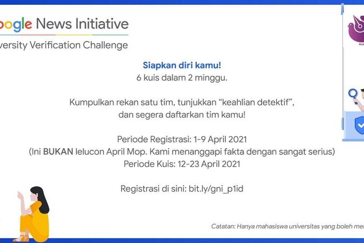 Google News Initiative University Verification Challenge telah diadakan di seluruh Asia, selanjutnya GNI akan mengadakan lokakarya verifikasi gratis dalam 7 bahasa (Inggris, Bahasa Indonesia, Hindi