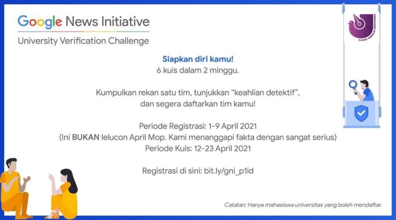 Dalam rangka memperingati Hari Pengecekan Fakta Internasional (International Fact-Checking Day), Aliansi Jurnalis Independen (AJI) Indonesia bersama Google News Initiative meluncurkan sebuah program pengecekan fakta untuk kalangan mahasiswa. Program bernama University Verification Challenge ini secara paralel diluncurkan di seluruh Asia dalam 7 bahasa, yaitu Bahasa Inggris, Bahasa Indonesia, Bahasa Hindi, Bahasa Jepang, Bahasa Korea, Bahasa Mandarin, Bahasa Thailand.