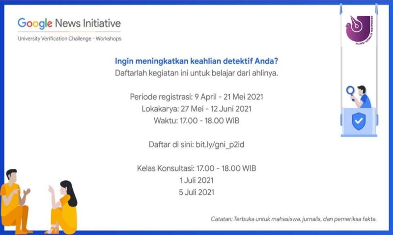 Google News Initiative University Verification Challenge telah diadakan di seluruh Asia, selanjutnya GNI akan mengadakan lokakarya verifikasi gratis dalam 7 bahasa (Inggris, Bahasa Indonesia, Hindi, Jepang, Korea, Mandarin, Thailand).