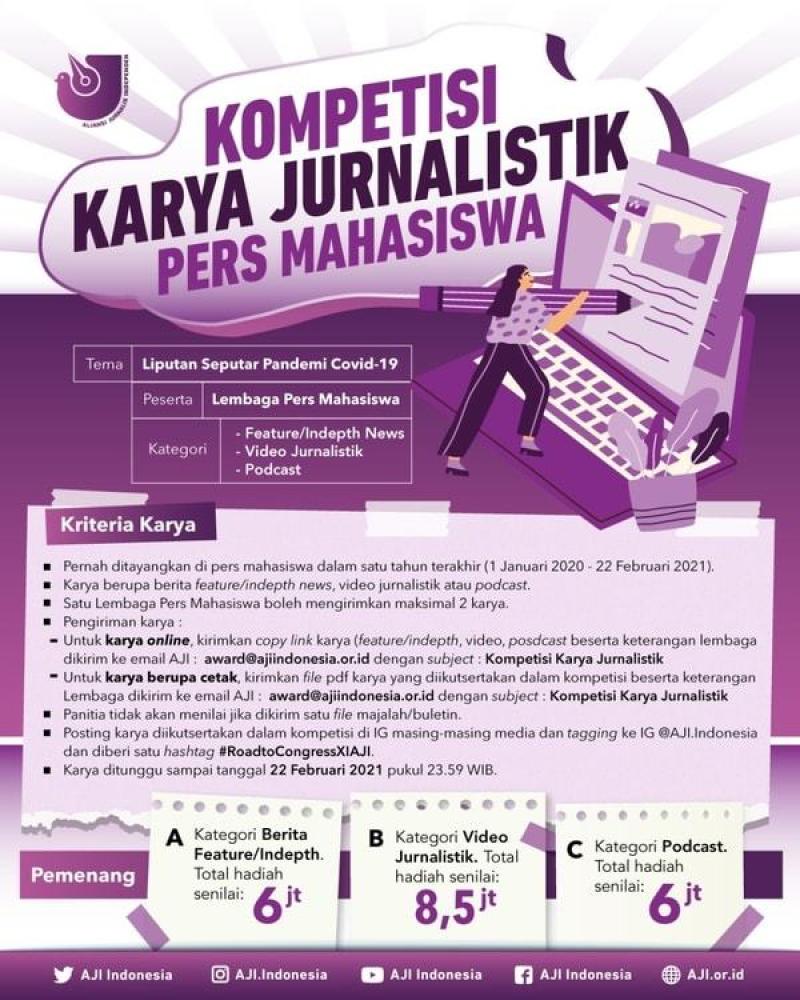 4. Posting karya diikutsertakan dalam kompetisi  di IG masing-masing media dan tagging ke IG @AJI.Indonesia dan diberi satu hashtag #RoadtoCongressXIAJI