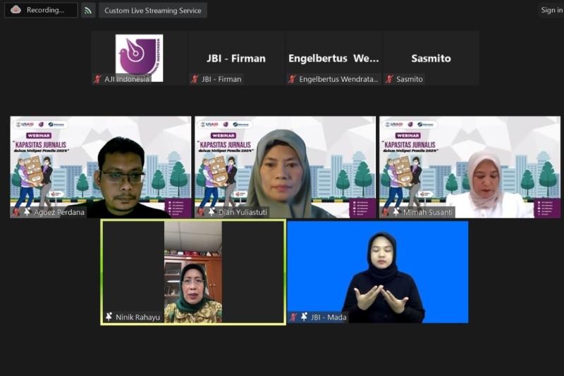 Aliansi Jurnalis Independen (AJI) Indonesia bersama konsultan dari PR2Media melakukan riset Kapasitas Jurnalis dalam Meliput Pemilu 2024. Riset yang dipublikasikan pada 12 Februari 2024 ini mendapatkan dukungan dari USAID MEDIA - Internews.