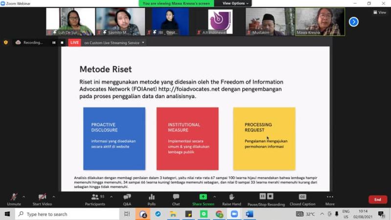 "Masih belum banyak lembaga publik yang memberikan informasi publik secara berkala," ujar Sasmito dalam sambutannya dalam Diskusi Publik Diseminasi Riset Pemetaan Keterbukaan Informasi secara virtual, Senin (2/8/2021).