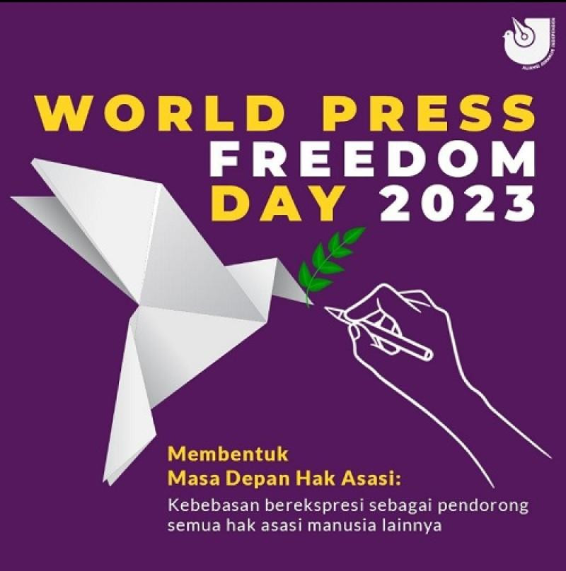 “Hari Kemerdekaan Pers 2023 menegaskan bahwa kebebasan berekspresi dan kebebasan pers saling bergantung, saling terkait, dan tak terpisahkan dengan hak asasi manusia lainnya,” kata Ketua Umum AJI, Sasmito pada 2 Mei 2023.
